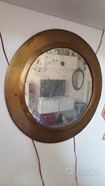 Bellissimo specchio rotondo con cornice in ottone.