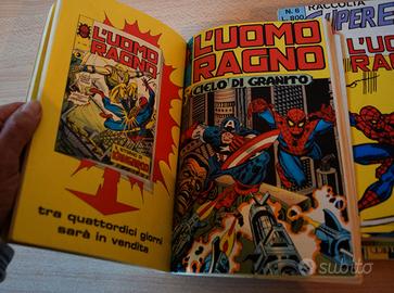 Speciali Uomo Ragno Star Comics n. 3 (novembre 1992 ‘Complotto per un omicidio’ con Cap America) e n. 4 (Novembre 1993 ‘Il bambino dentro’ con Vermin). Raccolte super-eroi Corno 6 (agosto 1981 coi nn. 226-227-230) e n. 50 (ottobre 1976 coi nn. 112-113-114). In omaggio la raccolta n. 4 (un po’ rovinata coi nn. 137-138-142).