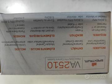 Documentazione, caratteristiche e foto ampiamente disponibili in rete. Trattasi di videocamera con trasmittente in 5,8GHz da 25mW (omologata) e 700TVL x droni FPV.