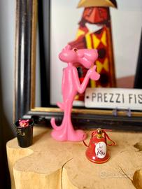 Bellissimo esemplare della fatidica Pantera Rosa in plastica soffiata completa di fiocco e campanella in ceramica, includo anche bellissimo Flexy mini con box intonso è perfettamente funzionante, per gli amanti del genere, lotto assolutamente da non perdere, oggetti vintage in eccellente stato conservativo… altezza 23 cm circa!
