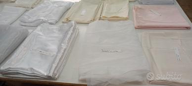 vendo spezzoni di tessuti di alta qualità, le metrature sono ampie e possono essere impiegate per comporre abiti, tendaggi etc. i prezzi sono da merce in stock e possono essere concordati tramite telefono, le tipologie di tessuto con le corrispettive metrature sono specificati in foto, dispongo anche di rotoli industriali di tessuti fino a 150 metri di lunghezza in stock per chi acquistasse l'intero lotto, per informazioni rivolgersi al 3273973205 dario