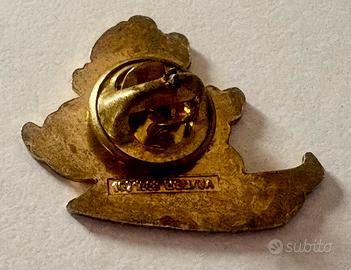 Spilla Pantera Rosa vintage che scia alta 2,3 cm e larga 2,5 cm.