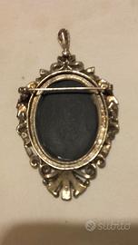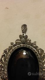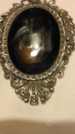 In argento 925 punzonata, contorno in cristalli di malachite, cm. 8 x cm. 5, ottime condizioni.