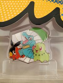 Spilla Pokémon Deluxe con Chikorita, Tepig e Totodile. Spilla del box Ascesa Eroica