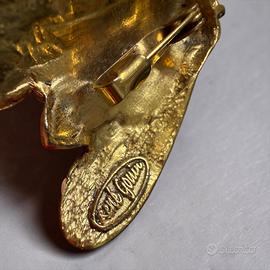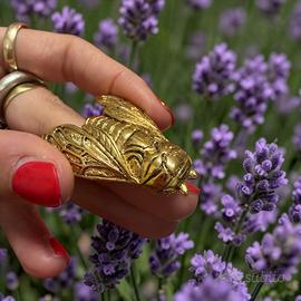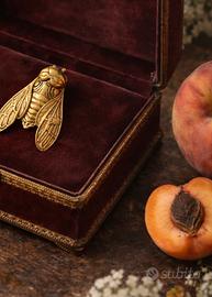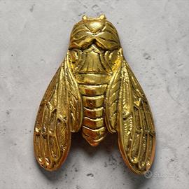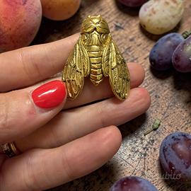 C’è un momento preciso, in estate, in cui il silenzio non esiste più. E al suo posto arriva quel suono continuo, quasi ipnotico… la cicala. Questa spilla sembra trattenere proprio quell’istante. Ferma, luminosa, scolpita con una cura sorprendente: le ali, il corpo segmentato, la testa leggermente fiera. Non è solo un insetto, è un piccolo frammento di Provenza. Firmata René Gouin, designer francese noto per le sue creazioni evocative, questa cicala porta con sé un immaginario preciso: luce calda, muri chiari, aria ferma e tempo sospeso. Indossarla non è un gesto neutro. È scegliere di portare con sé qualcosa di vivo, anche quando tutto il resto corre. È sentirsi l’estate addosso. E forse, senza accorgertene, qualcuno ti chiederà: “Dove l’hai trovata?” * Tipologia: spilla vintage * Designer: René Gouin * Epoca: anni ’80–’90 * Materiale: metallo dorato * Firma: presente sul retro * Chiusura: ago con fermo * Provenienza: Francia * Soggetto: cicala