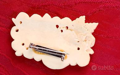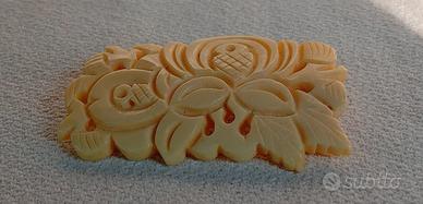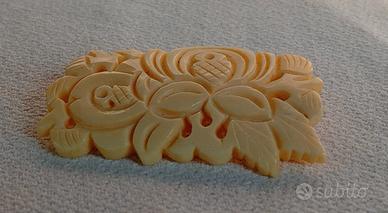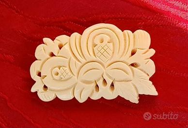 Bellissima spilla vintage realizzata in osso con un elaborato intaglio floreale. - Design floreale dettagliato. - Materiale: osso. - Stile: vintage. - Misura cm. 5,5 X 3,5