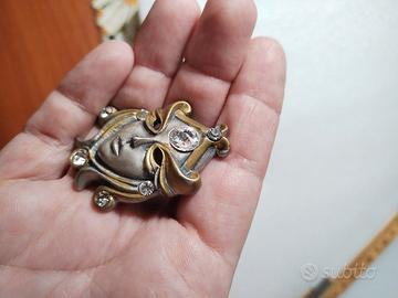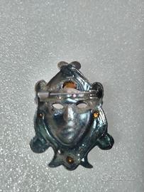 Aggiungi un tocco di fascino e mistero al tuo look con questa splendida spilla broche a forma di maschera veneziana. Realizzata con dettagli intricati e impreziosita da brillanti strass, questa spilla unica cattura l'essenza dell'eleganza. Perfetta per decorare sciarpe, cappotti, borse o qualsiasi capo tu desideri valorizzare. Ideale per gli amanti degli accessori distintivi e per chi cerca un pezzo che evochi un'atmosfera sofisticata.