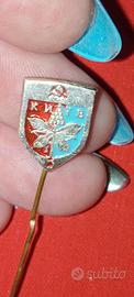 L'immagine mostra unaspilla con lo stemma di Kiev, risalente al periodo sovietico, quando l'Ucraina era parte dell'Unione Sovietica come Repubblica Socialista Sovietica Ucraina.