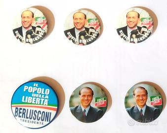 Vario materiale di uso collezionistico a tema politico, come da foto, spille, fasce da braccio, coccarda, mazzi di carte da gioco, bandiere nelle misure di 97x68 cm e 130x95 cm di tipo tradizionale e di tipo come da foto, copie del libro: "L' Italia che ho in mente" di Silvio Berlusconi. Possibilità di vendita pezzi singoli. Prezzi in privato.