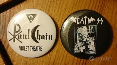 SPILLE del vecchio Cursed Coven di Modena di Michele Casella (periodo anni 90 / primi 2000) Le prime spille d’epoca ufficiali originali con diametro ⌀ 5 centimetri l’una rimaste intonse inusate (niente a che vedere con le cacchiatine di 2 cm che circolano in giro adesso) - DEATH SS EVIL METAL ..…………….….....… €45 - PAUL CHAIN VIOLET THEATRE …..….....… €45