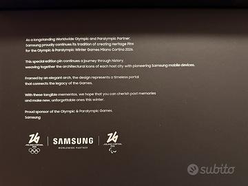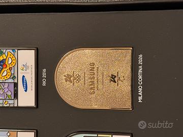 15 spille samsung edizione olimpica limitata. spille estremamente rare in quanto regalate SOLO a chi ha vinto almeno una medaglia agli ultimi giochi olimpici. rappresentano samsung in tutte le edizioni olimpiche (sia estive che invernali) da Nagano 1998 fino ad oggi
