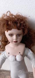 Splendida bambola vintage originale Teorema Collection con testa, mani e piedi in finissima porcellana biscuit in condizioni impeccabili e priva di sbeccature, caratterizzata da lineamenti del viso dipinti a mano e una folta capigliatura ramata, ideale come base di pregio per collezionisti e creativi che desiderano personalizzarla realizzando un abito sartoriale su misura