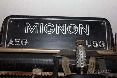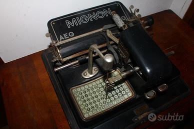 Splendida Macchina da Scrivere Mignon AEG degli Anni Venti un autentico gioiello di storia industriale e di design che eleva ogni ambiente Questo modello iconico con la sua inconfondibile struttura in metallo smaltato nero è un magnifico pezzo da collezione che trasmette immediatamente un'atmosfera vintage e sofisticata Il suo affascinante meccanismo di scrittura a indice è un richiamo tangibile a un'epoca passata di grande ingegneria. Le chiare iscrizioni AEG MIGNON USG sul pannello superiore ne confermano l'autenticità e il valore storico. Si tratta del complemento d'arredo perfetto per impreziosire uno studio professionale conferendo serietà e gusto classico o per aggiungere un tocco di eleganza rétro e narrazione in un negozio o in una boutique. La Mignon AEG è più di una macchina da scrivere è un elemento di design dal fascino magnetico e senza tempo pronto a diventare il punto focale del tuo arredamento. No spedizione consegna a mano
