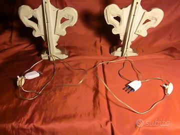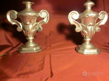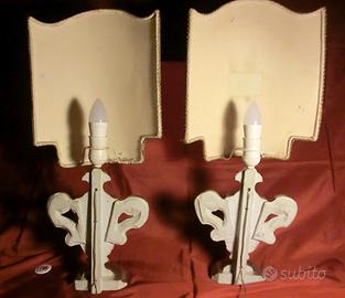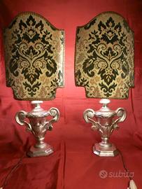 SPLENDIDE LAMPADE / ABAJOUR IN STILE SETTECENTESCO Provenienza: Opere provenienti da collezione privata Epoca: sec. XX Misure di ogni singola opera: (altezza) 65 cm x ( larghezza) cm 29 Descrizione : Splendide lampade da tavolo in stile settecentesco che presentano una combinazione di eleganza e funzionalità, tipica dell'arte decorativa di metà Novecento. Le basi sono costituite da portapalme in legno massello, con argentatura a mecca, un trattamento che conferisce loro un aspetto lucido e ricco. Il design della base richiama le linee classiche settecentesche, con dettagli eleganti che evocano un senso di antichità e raffinatezza. I paralumi sono realizzati in tessuto broccato, un materiale ricco e decorato con motivi floreali, che offre una texture raffinata e un aspetto sontuoso. Ogni lampada ha una struttura rigida interna, che permette di mantenere la forma anche nel tempo, mentre il tessuto stesso crea un'atmosfera calda e avvolgente. Entrambe le lampade sono già elettrificate e funzionanti, con due lampadine nuove a basso consumo energetico incluse nel prezzo. Le lampade offrono un'illuminazione morbida e diffusa, grazie al riflesso della luce sulla parte posteriore, che crea un suggestivo effetto, perfetto per ambienti eleganti. Ogni lampada ha un formato che le rende perfette per essere collocate su tavoli o mobili d'epoca, ma anche per aggiungere un tocco di classe a qualsiasi arredamento moderno. Ottimo lo stato di conservazione, vedi foto. Ideali come complemento d'arredo in un ambiente in stile moderno o classico!!! PRONTE DA UTILIZZARE! BELLISSIMI OGGETTI AD UN PREZZO DA REALIZZO!!!!!! PREZZO NON TRATTABILE