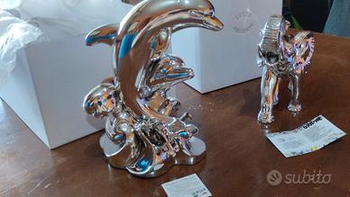 due splendide sculture artigianali fatte a mano lulia argenti l'elefante 18per 18 il Delfino 22 x 18. prezzo di negozio 380 euro vendo per errato regalo