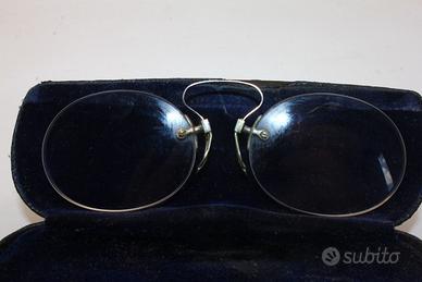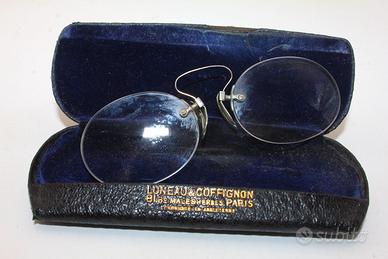 Splendido e affascinante esemplare di occhiali "pince-nez" risalente alla fine del XIX secolo, una vera testimonianza dell'eleganza e dello stile intellettuale della Belle Époque. Questo modello si caratterizza per il suo design essenziale e raffinato, con lenti ovali prive di montatura che ne accentuano la leggerezza visiva e la classe. La caratteristica struttura a molla, progettata per essere "pizzicata" delicatamente sul ponte del naso, è un piccolo capolavoro di ingegneria e artigianato dell'epoca. L'occhiale è conservato in maniera impeccabile all'interno della sua custodia originale, un dettaglio di grande pregio che ne accresce il valore storico. L'astuccio, con il suo esterno nero e l'interno foderato in un sontuoso velluto blu intenso, è sagomato alla perfezione per accogliere e proteggere il pince-nez. All'interno, le lettere dorate ancora ben leggibili rivelano la prestigiosa provenienza: "LUNEAU & COFFIGNON", rinomati ottici con sede in Boulevard Malesherbes a Parigi. Questo set non è un semplice accessorio, ma un autentico pezzo di storia che cattura l'essenza di un'epoca passata.