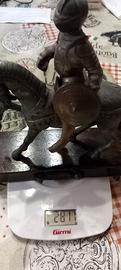 Splendido cavaliere medievale dell'XI secolo in bronzo pieno massiccio alto 21 cm, un pezzo vintage d'epoca (anni '60) di eccezionale peso e pregio artistico, perfetto per collezionisti che cercano l'autenticità del metallo nobile e un complemento d'arredo di intramontabile classe.
