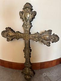 Crocefisso in lamina di argento, lavorato fronte e retro, interno di legno originale, 46x62cm. Per veri intenditori, epoca 1700