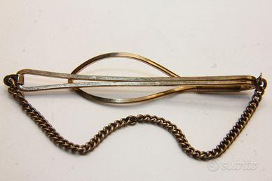 Questo splendido fermacravatta, realizzato in oro su argento, presenta un design elegante e allungato di 66 x 14 mm, perfetto per aggiungere un tocco di raffinatezza classica all'abbigliamento formale. L'accessorio è completato da una catenella robusta e abbinata che ne assicura la stabilità e valorizza l'estetica sofisticata del gioiello.