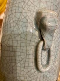 Splendido granfe vaso Cina color turchese ceramica craquele’ altezza 46 cm