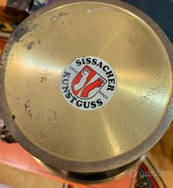 Splendido mortaio massiccio e intagliato di ottone munito di pestello . Un pezzo unico e introvabile ,proveniente dalla Svizzera anno 1989 . Ideale per collezionisti ,da esposizione in farmacie o erboristerie. Peso 2 ,9 kg. Presenta dei graffi all’interno ,ma esternamente presenta pochissime imperfezioni.