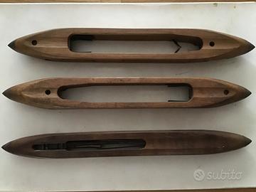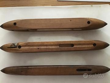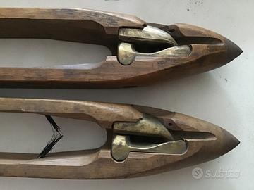 Due spolette in legno di rovere con puntali in acciaio e ferramenta in ottone.