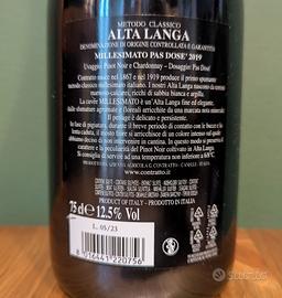 Vendo bottiglia 75cl di spumante metodo classico Alta Langa DOCG Pas dosé 2019 Millesimato Cantina CONTRATTO, riconosciuta come la più vecchia produttrice di Metodo Classico in Italia, sempre tenuto in cantina a temperatura costante