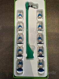 Porta a casa un pezzo di storia del calcio: la squadra di Subbuteo della leggendaria Nazionale Italiana del 1982! Questa edizione ufficiale Centauria su licenza Hasbro celebra l'indimenticabile trionfo in Spagna con i classici colori azzurri. Dettagli del set: • Squadra Subbuteo completa: 10 giocatori con maglia azzurra e pantaloncini bianchi, più portiere con asta verde. • Qualità superiore: Miniature in scala OO con scudetto dettagliato e basi bianco-blu. • Condizioni: Set in condizioni eccellenti, pari al nuovo, conservato nella sua scatola originale a tema. • Collezione: Parte della serie "La leggenda del Subbuteo". Ideale per tornei tra amici o da esporre in bacheca tra i cimeli storici.