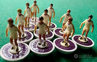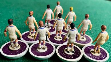 Squadra Subbuteo lw “ritoccata” Fiorentina 2nd Anderlecht Real Madrid. 10 giocatori (1incollato) in buone condizioni. NO PORTIERE BOX CREATO Basi Subbuteo originali colore bianco. Inner Subbuteo originali dipinti colore viola.
