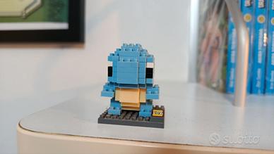 Modellino di Squirtle realizzato con blocchi da costruzione LOZ. - Personaggio di Pokémon. - Base inclusa. - Colore blu e giallo