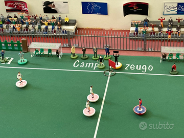 Completano il lotto set streakers con istruzioni e poliziotti, set VIP reali inglesi con regina, squadra Palermo away dipinta a mano, 4 squadre complete C100 in scatola originale, 4 squadre complete Zeugo è una squadra total soccer, 7 squadre subbuteo, 4 squadre Zeugo con 2 calciatori rotti. Il terreno di gioco ha una piccola parte rovinata (vedi foto).