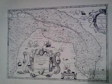 Magini Giovanni Antonio Terra di Otranto Olim, Salentina, & Iapigia Stampa anni 40. Carta geografica, raffigurante il territorio della Puglia meridionale, molto decorativa mm 340x475. Disponibile a mostrare la stampa. Trattabile.