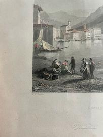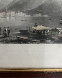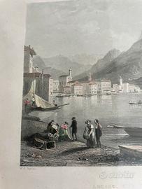 Stampa databile intonro alla metà del XIX secolo, ritraente Lugano con il suo lavo e le sue montagne. Firmato W.H.Bartieu e C. Richardson e stampato a Londra da “London James S. Virtue”