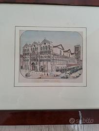 Originale stampa antica autentica. Incisione acquerellata del 1892 della Cattedrale di Ferrara.