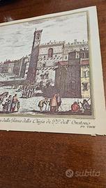 Antica stampa raffigurante la Veduta della Badia Fiorentina e del Palazzo del Potestà.