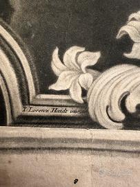 Importante incisione barocca tratta da un'opera di I. Lorenz Haidt e realizzata da Christian Rugendas ad Augusta nel XVIII secolo.