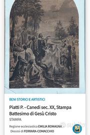 Stampa antichissima del battesimo di gesu da giovanni battista, del pittore Piatti.P, xx secolo, ben conservata gia da oltre 60 anni in casa di mia nonna, vendo ad euro 90.si effettua spedizione ,info 3296713344, sig. Alessandro