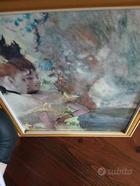 Quadro con stampa cartonata artistica (leggermente rialzata in alcuni punti, non si nota più di tanto). La stampa rappresenta un capolavoro di Edgar Degas- ballerine dietro le quinte. Consiglio l'acquisto con brt ecc, evitando Poste (spesso rispedisce il pacco indietro).