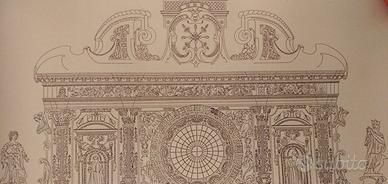 Stampa su cartoncino del prospetto della Basilica di Santa Croce di Lecce (Puglia, Italia), simbolo del barocco della città, mai utilizzata, come nuova.
