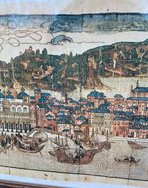 Stampa CIVITAS VENECIARU da incisione del XV sec. da telef. 5365/66. La stampa (incorniciata con vetro) CIVITAS VENECIARU fa parte dell’opera “peregrinatio in terram sanctam” edita per la prima volta a Magonza nel 1486. L’opera presenta VENEZIA su uno sfondo fantastico con i suoi monumenti principali. Di grande interesse per il suo valore cartografico e per gli storici della nave in quanto riproduce i vari tipi di nave a remi e a vela con grade dovizia di particolari. Questa ristampa in NUMERO LIMITATO ne costituisce copia fedele in otto colori formato 110x22 cm. Condizioni: ottime. Imballo accurato spedizione tracciabile