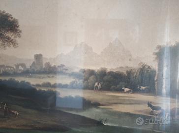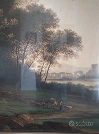 Stampa classica con effetto tela raffigurante un paesaggio bucolico, molto suggestivo e dettagliato. Racchiusa in una cornice lineare con passpartou in tela e vetro la stampa ripropone il tema paesaggistico dei dipinti antichi. Mis. 110x60(esclusa cornice) Per info 340 6203846 o WhatsApp.