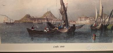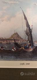 Stampa con una veduta dell’isola di Corfù nel 1840 su cartoncino