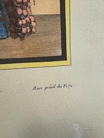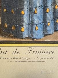 Stampa decorativa raffigurante “Habit de Fruitière”, ispirata alle incisioni francesi dei mestieri tra Seicento e Settecento. Ristampa italiana di qualità, con scritte originali in francese e fascino d’epoca. Ideale per arredamento classico, studio o regalo.