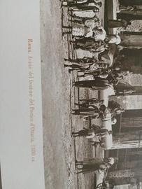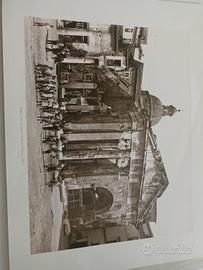 Stampa - Roma Avanzi del frontone del Portico d'Ottavia anno 1880 Si tratta del fascicolo numero 8 della collana "C'era una volta Roma", pubblicata intorno al 1990 dagli Archivi Alinari. Si tratta di una serie di cartelle che raccolgono riproduzioni di stampe e fotografie d'epoca della Capitale, con misure tipiche di circa 30x40 cm. Il Soggetto: Portico d'Ottavia La stampa raffigurata mostra gli Avanzi del frontone del Portico d'Ottavia, situato nel cuore del Rione Sant'Angelo (il Ghetto ebraico). www.romasparita. L'immagine originale risale a circa il 1880. Nella foto si nota il frontone del portico costruito originariamente da Augusto in onore della sorella Ottavia. All'epoca dello scatto, la zona era un centro pulsante di vita quotidiana: proprio sotto il portico si teneva storicamente un mercato del pesce, segnalato ancora oggi da un'antica lastra di marmo visibile sul lato destro. Curiosità: Sullo sfondo si scorge la cupola della chiesa di Sant'Angelo in Pescheria, costruita proprio all'interno dei resti dell'antico complesso romano. Questa specifica serie Alinari è molto apprezzata dai collezionisti per la qualità delle riproduzioni di immagini d'archivio che documentano la "Roma sparita" prima delle grandi trasformazioni urbanistiche di fine secolo.