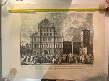 Stampe storiche di Venezia, grandi incisioni con vedute di Piazza San Marco e Palazzo Ducale.
