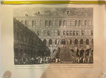 Stampe storiche di Venezia, grandi incisioni con vedute di Piazza San Marco e Palazzo Ducale.