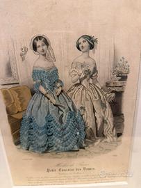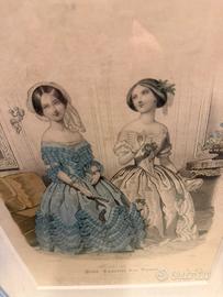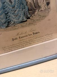 Stampa francese “moda Parigi 1848” “Boulevard des italienes,1” Corjice in legno con vetro 28 cm x 37 cm