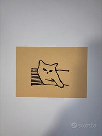 Stampa A6 gatto in tecnica lineografica a mano. Il colore del cartoncino è personalizzabile nei colori presentati. La cornice NON è in vendita, è a solo scopo decorativo. Contattatemi per ogni dubbio!!
