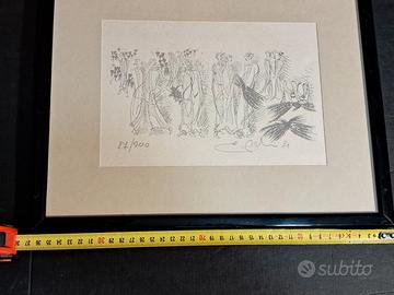 Stampa in bianco e nero numerata 87/200 del 1981 con cornice nera con vetro dimensioni come da foto