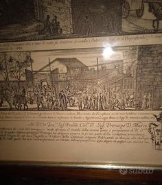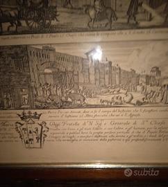 Vendo stampa/incisione a soggetto storico con scene e didascalie, intestazione “Ordini, diligenze e ripari…”, riferita alle misure sanitarie per liberare Roma dal contagio (serie datata 1657; indicazione editoriale Gio. Giacomo de Rossi leggibile nella stampa).